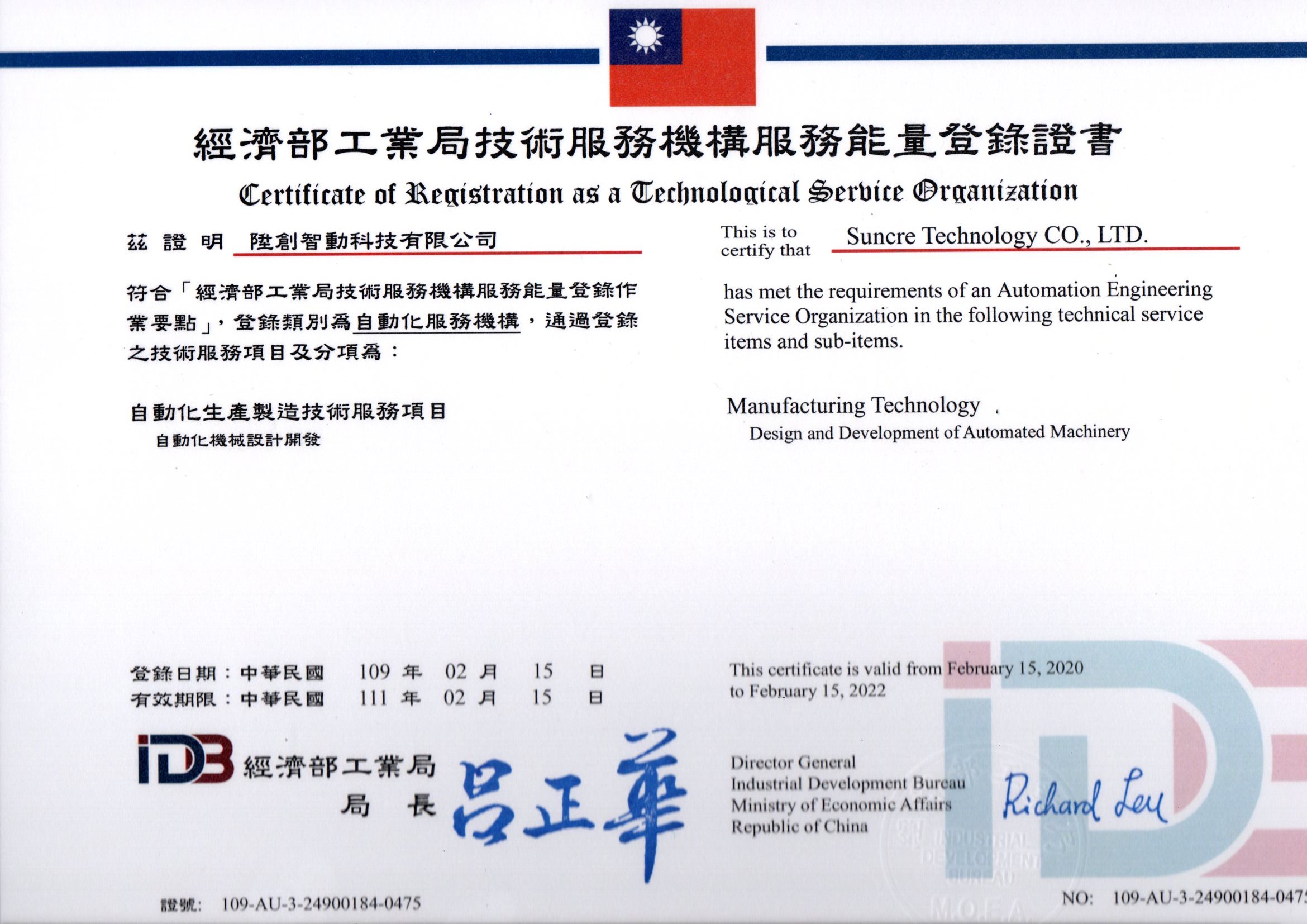 通過經濟部工業局 能量登錄-自動化廠商 的資格審核
